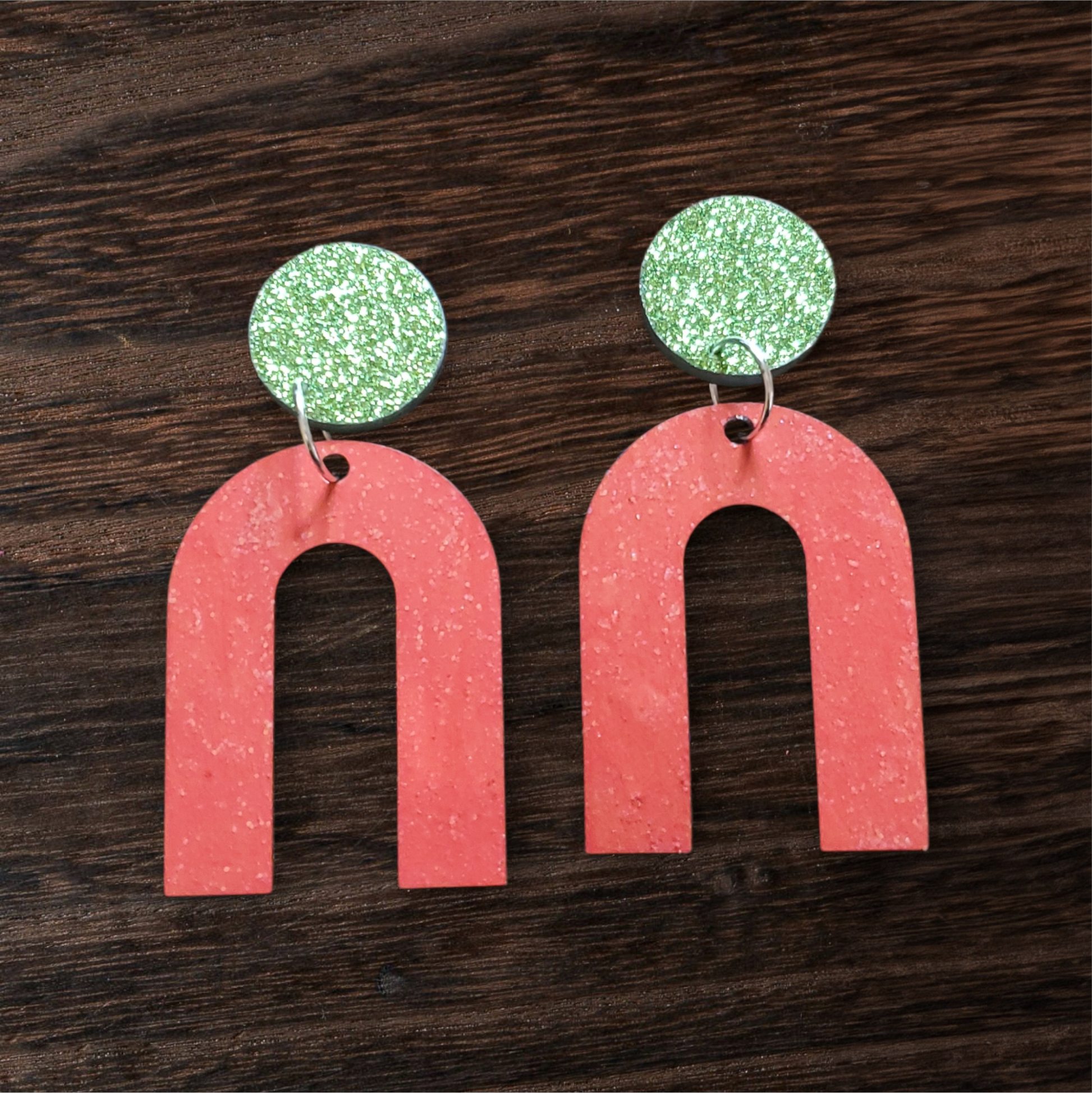 Add a pop of holiday cheer with these sparkling Christmas earrings! Featuring a shiny, shimmery green top, each earring dangles a bold red arch adorned with a glittery overlay for extra festive flair. Lightweight, vibrant, and full of seasonal sparkle, this pair is perfect for bringing merry, jingly joy to any holiday outfit. šāØ