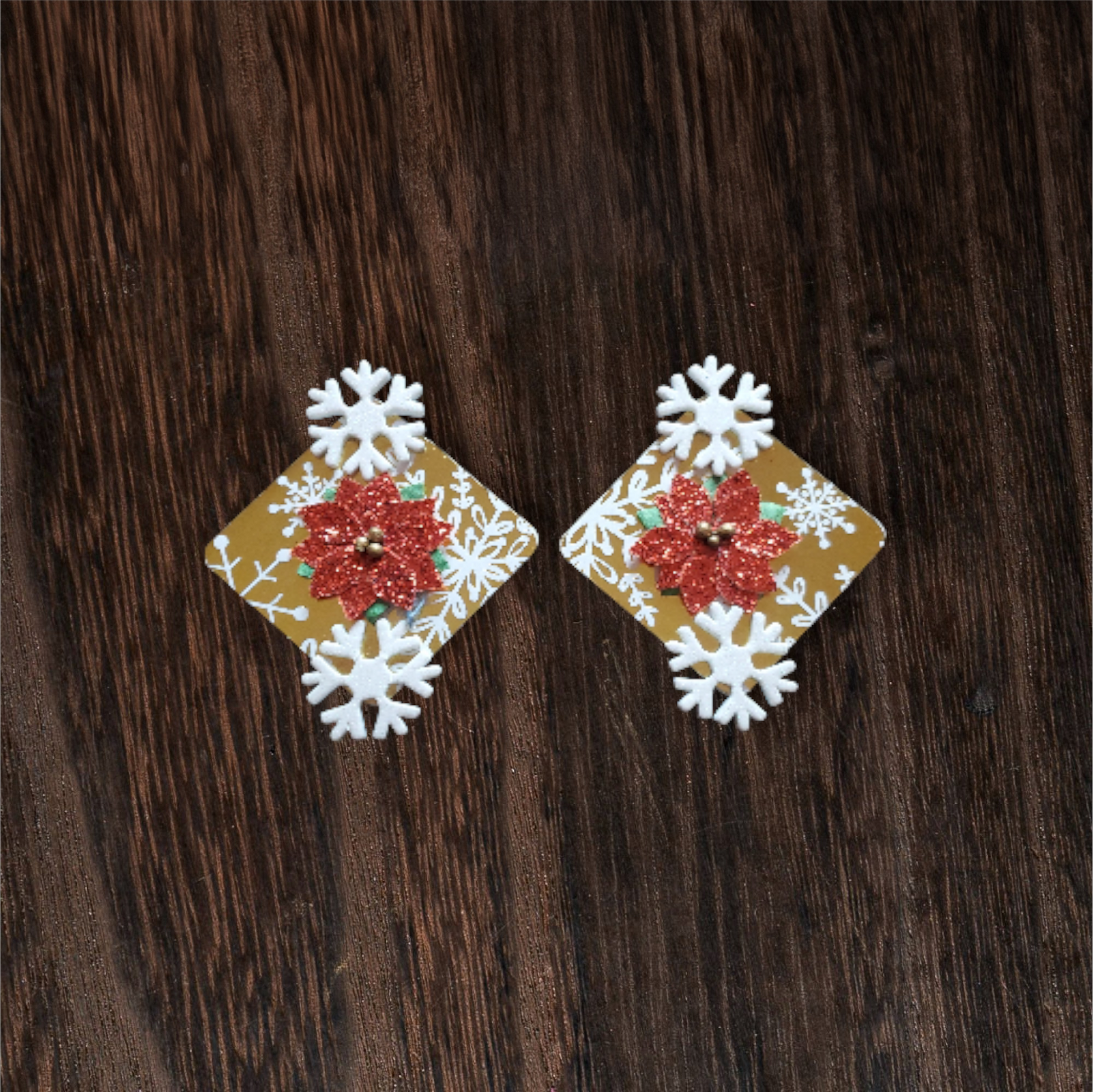 Bring the playful spirit of an ugly Christmas sweater to your holiday look with these festive statement earrings! Designed with a gleaming gold base, each pair is decked out with whimsical snowflakes and a bright poinsettia leaf for that perfectly over-the-top Christmas charm. Lighthearted, bold, and full of seasonal cheer, these earrings are the ultimate accessory for anyone ready to sleigh the holiday fun. šāØ